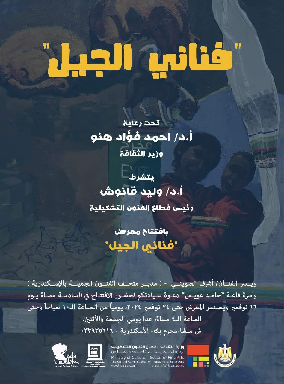 أعلن قطاع الفنون التشكيلية برئاسة الدكتور وليد قانوش عن افتتاح معرض جماعي في رحاب متحف الفنون الجميلة بالإسكندرية، تحت عنوان “فناني الجيل” يوم السبت الموافق 16 نوفمبر الجاري.