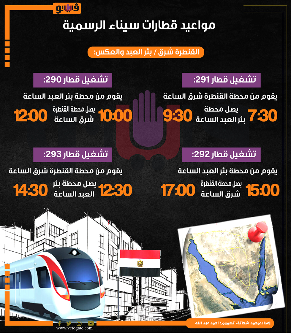 مواعيد قطارات سيناء الرسمية (إنفوجراف) الخميس 14/نوفمبر/2024 - 11:02 ص 11/14/2024 11:02:11 AM السكك الحديد فيتو محمد شحاته شارك طباعة 18 حجم الخط شارك طباعة القنطرة شرق اشتراكات القطار الكهربائى محطة القنطرة شرق