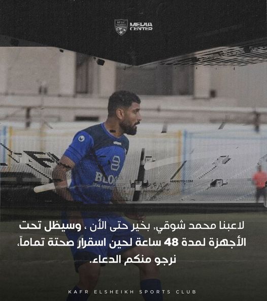 ونشر كفر الشيخ عبر صفحته الرسمية علي موقع التواصل الاجتماعي فيسبوك: “لاعبنا محمد شوقي، بخير حتى الآن، وسيظل تحت الأجهزة لمدة 48 ساعة لحين اسقرار صحته تمامًا، نرجو منكم الدعاء”.