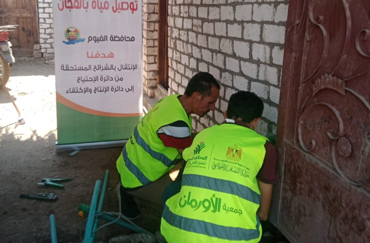 تضامن الفيوم: تركيب 75 وصلة مياه شرب مجانية لمنازل الأسر الأولى بالرعاية بمركز طامية