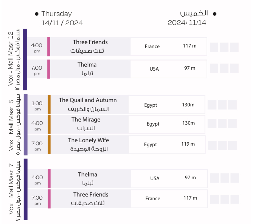 عروض أفلام مهرجان القاهرة السينمائي الدولي اليوم
