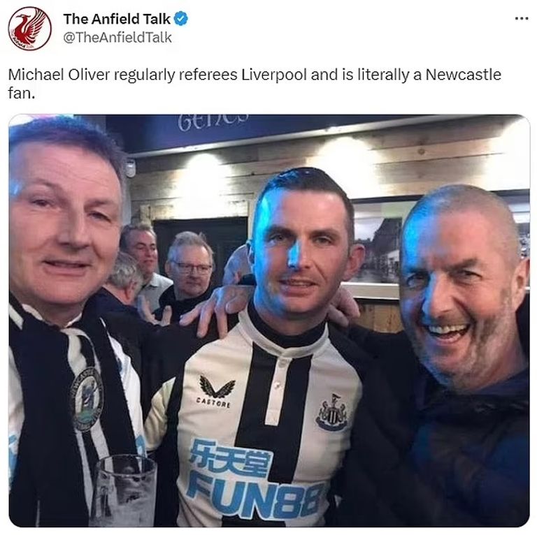 وهناك حكم آخر يدعم نيوكاسل وهو مايكل أوليفر، الذي حضر مباراة باريس سان جيرمان الفرنسي مع الماكبايز في العاصمة الفرنسية باريس الموسم الماضي في دوري أبطال أوروبا والتي انتهت 1-1.