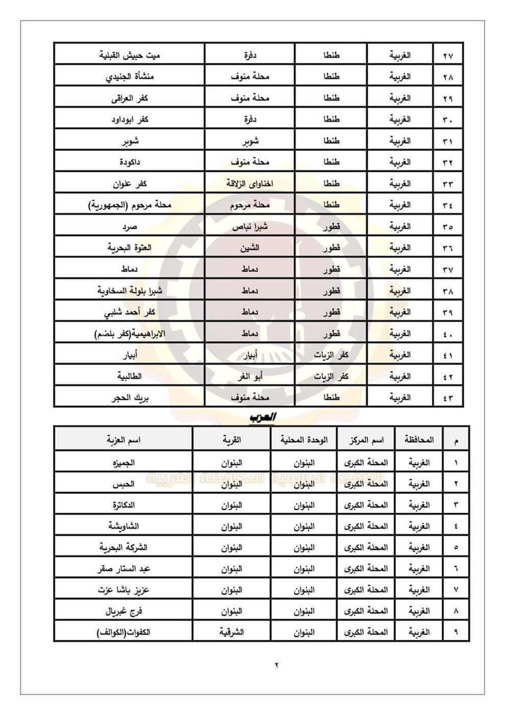 اعتمد اللواء أشرف الجندي محافظ الغربية الأحوزة العمرانية لـ 43 قرية تابعة لمراكز “السنطة - المحلة الكبرى- زفتي- سمنود - طنطا- قطور- كفر الزيات”، و31 عزبة تابعة لمراكز “المحلة الكبرى - بسيون- زفتى - سمنود- قطور- كفر الزيات” و247 عزبة تحديث الحيز العمراني تابعة لمراكز “المحلة الكبرى - بسيون- زفتى - سمنود- طنطا – قطور- كفر الزيات”. لتوقيعها على الطبيعة وبدء العمل بها.