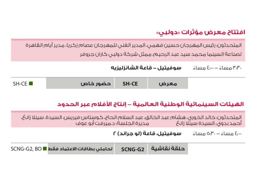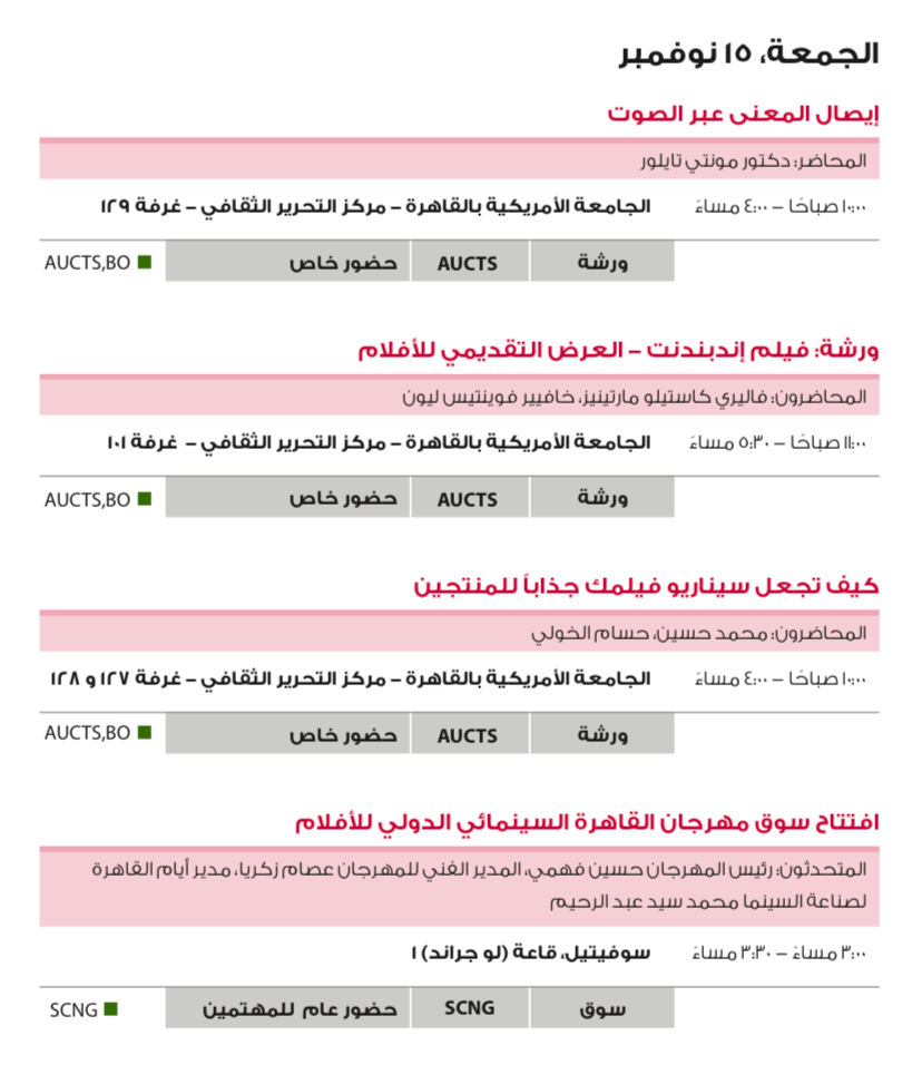 ندوات وفعاليات مهرجان القاهرة السينمائي الدولي اليوم الجمعة