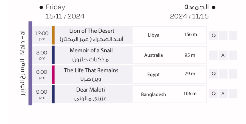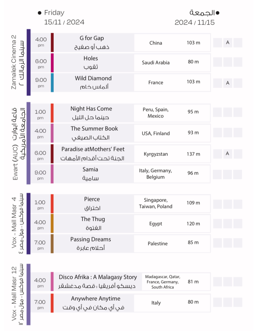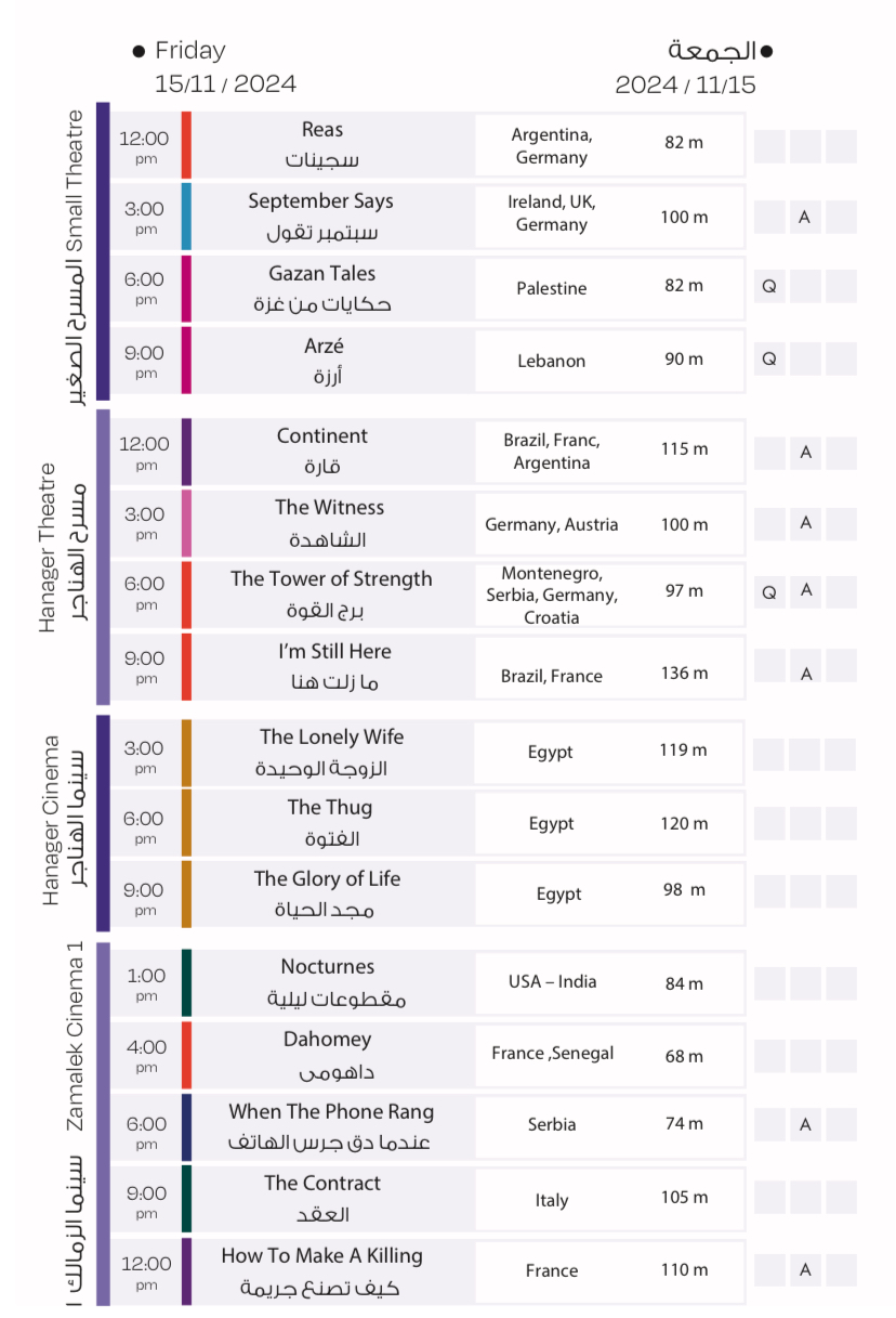 فعاليات وعروض أفلام مهرجان القاهرة السينمائي الدولي اليوم الجمعة