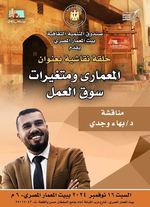 في إطار سعي بيت المعمار المصري، التابع لقطاع صندوق التنمية الثقافية لإبراز ثقافة العمارة المصرية، والعمل على التوعية الثقافية والإعلامية في مجال، المعمار والعمران والبيئة المصرية، يشهد بيت المعمار المصري بمقره بدرب اللبانة (ميدان القلعة)، حلقة نقاشية جديدة بعنوان "المعماري ومتغيرات سوق العمل" وذلك في السادسة مساء اليوم السبت الموافق 16 نوفمبر، ومن المقرر أن يقدم الندوة المعماري بهاء وجدي.