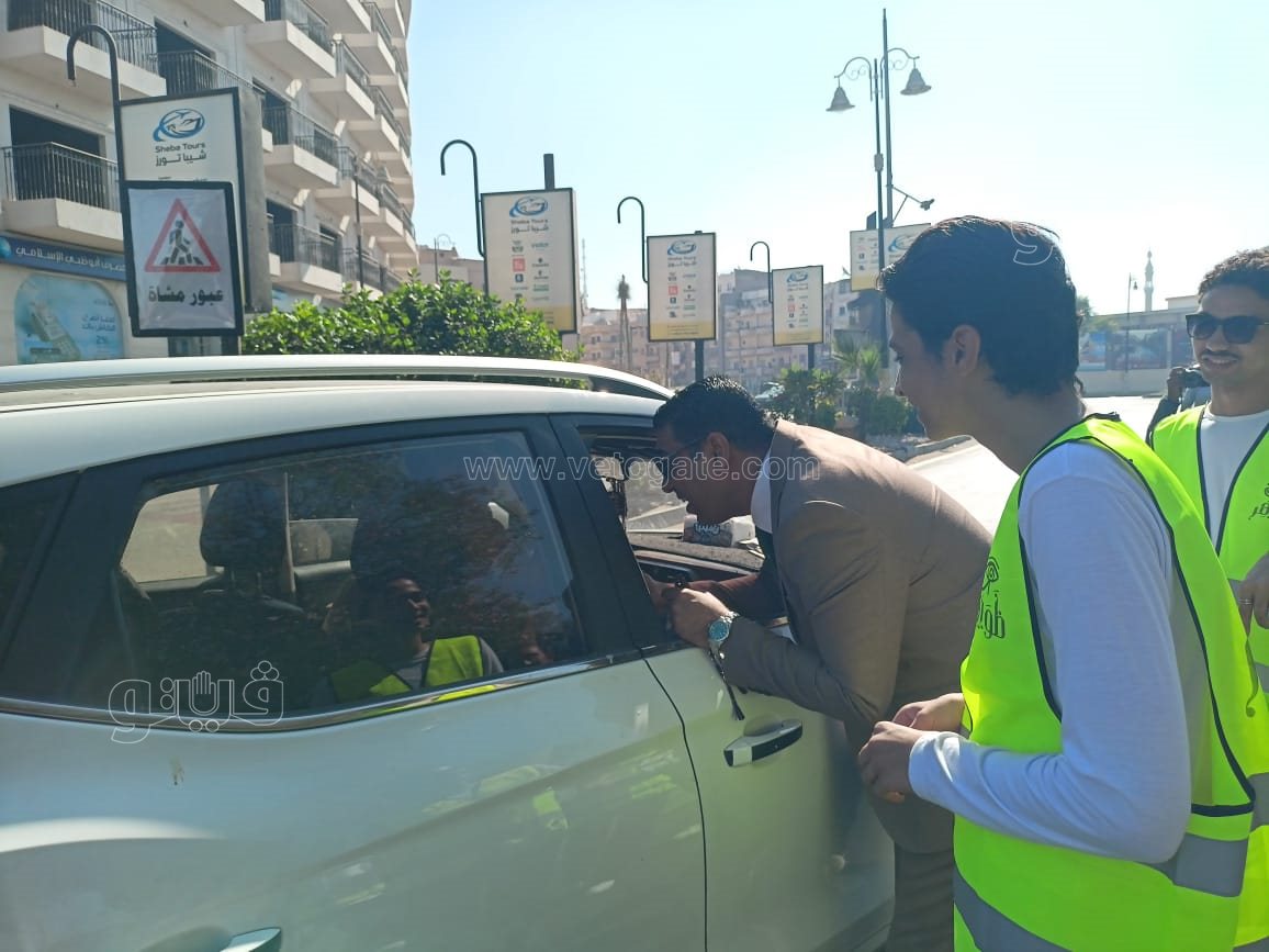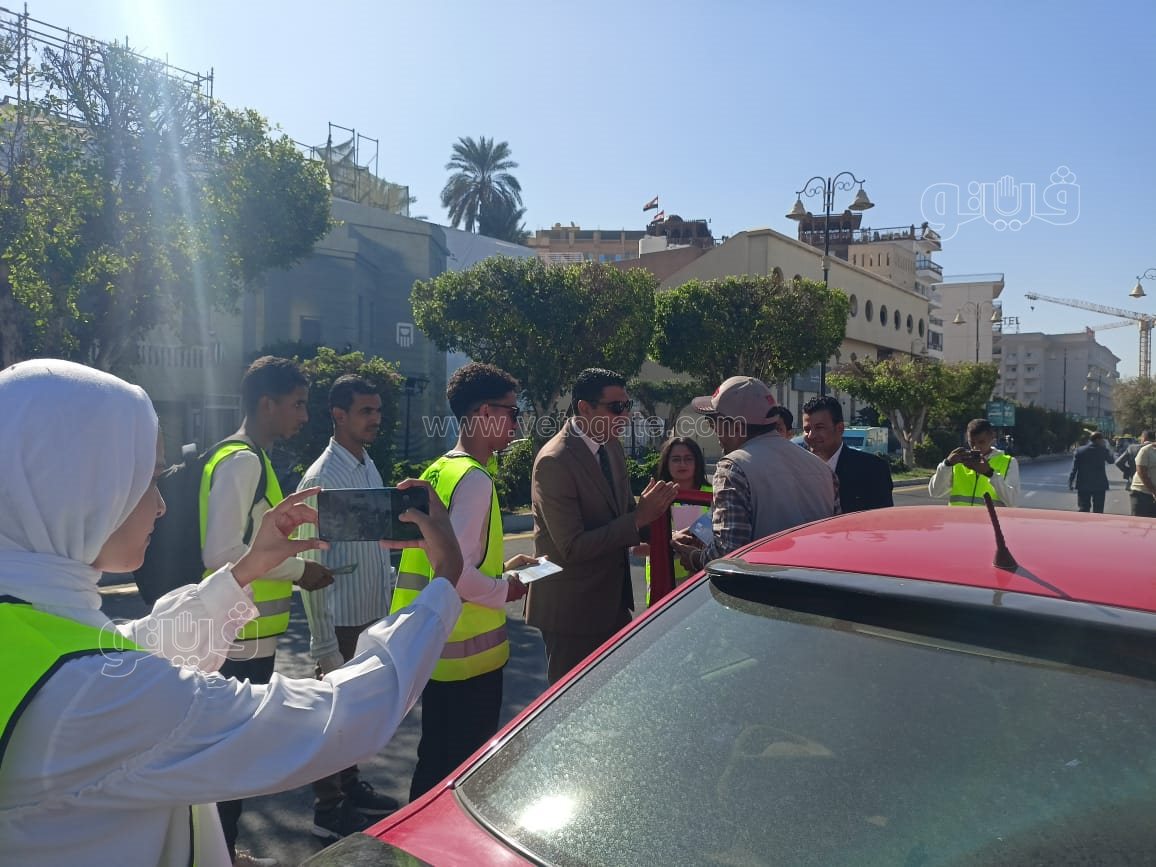 وقام الدكتور هشام أبو زيد نائب محافظ، بتوزيع البروشورات التي تضم نصائح توعوية لحوادث الدراجات النارية تحت شعار «السرعة قد توصلك أسرع.. لكن القيادة الآمنة توصلك بسلام» على قائدي السيارات والموتوسيكلات، كما وزع عليهم ميداليات خشبة لعين حورس كهدايا تذكارية، وأبدى عدد كبير من أبناء الأقصر الإعجاب بالمبادرة.