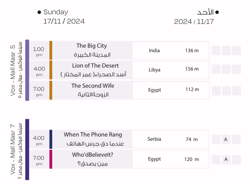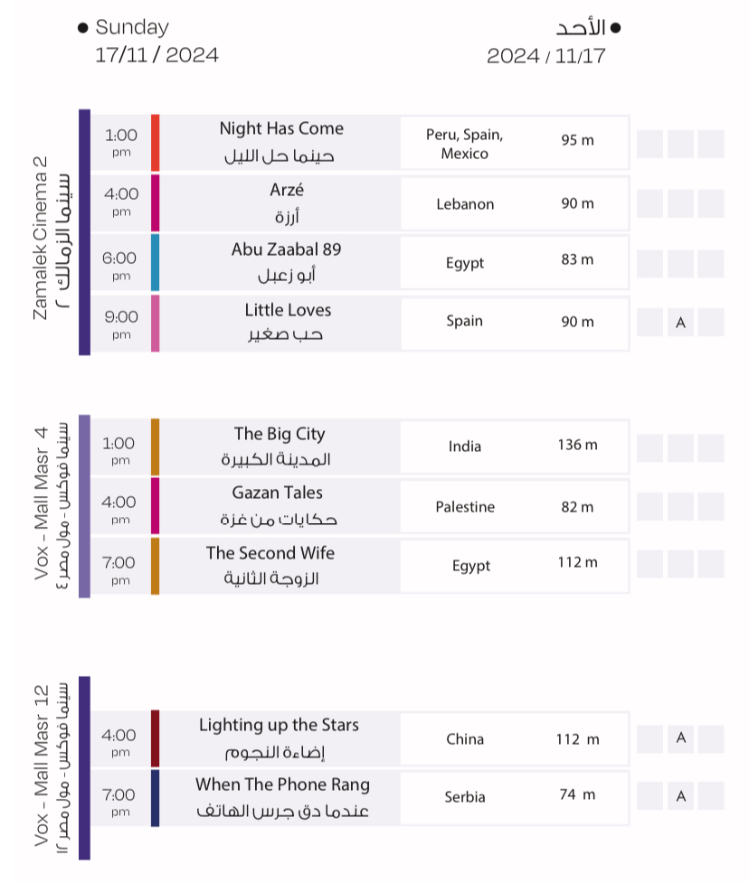 عروض أفلام مهرجان القاهرة السينمائي الدولي اليوم