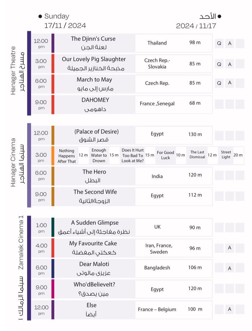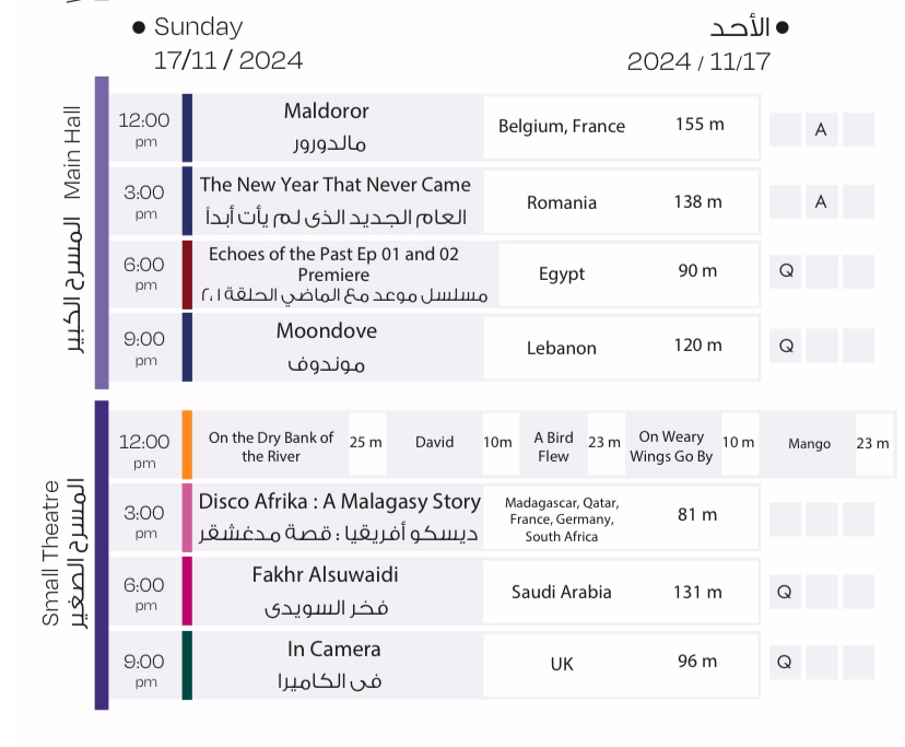 مهرجان القاهرة السينمائي، فعاليات وعروض أفلام اليوم الأحد