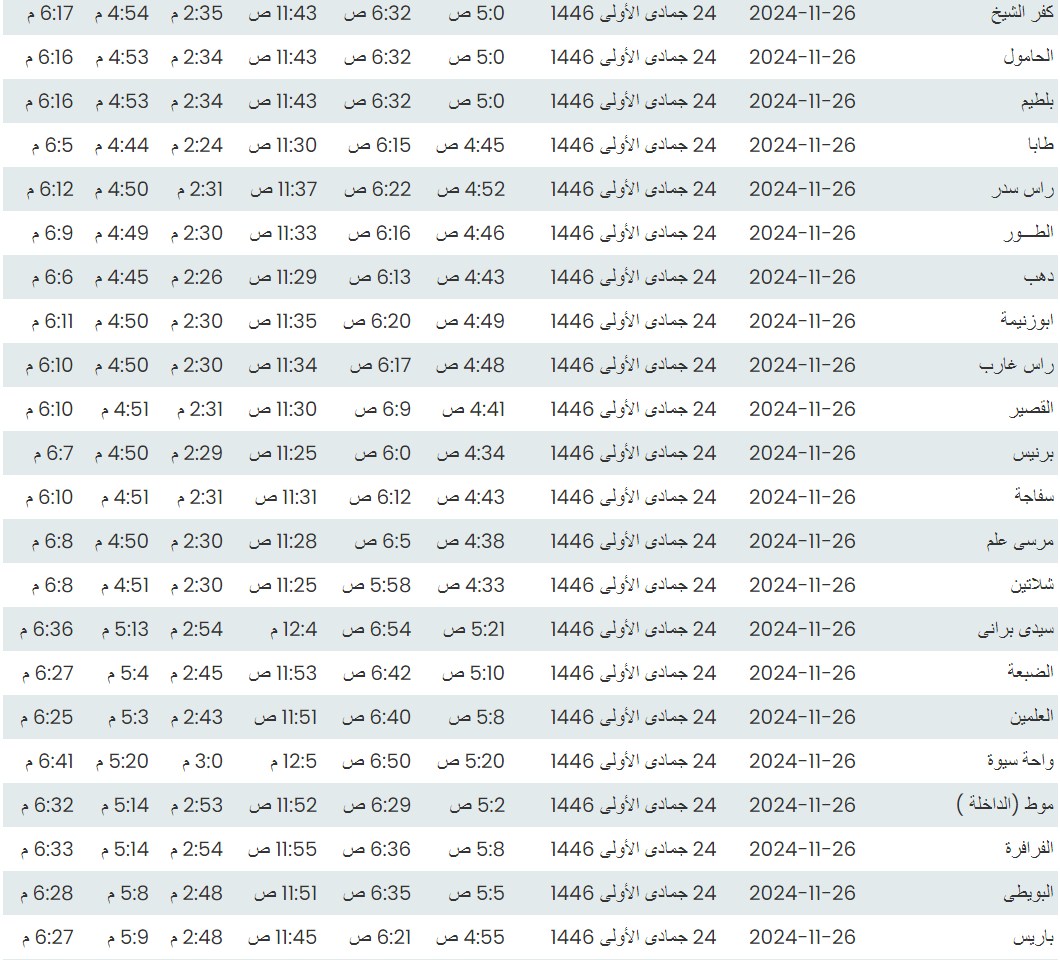 مواقيت الصلاة اليوم بتوقيت أسوان