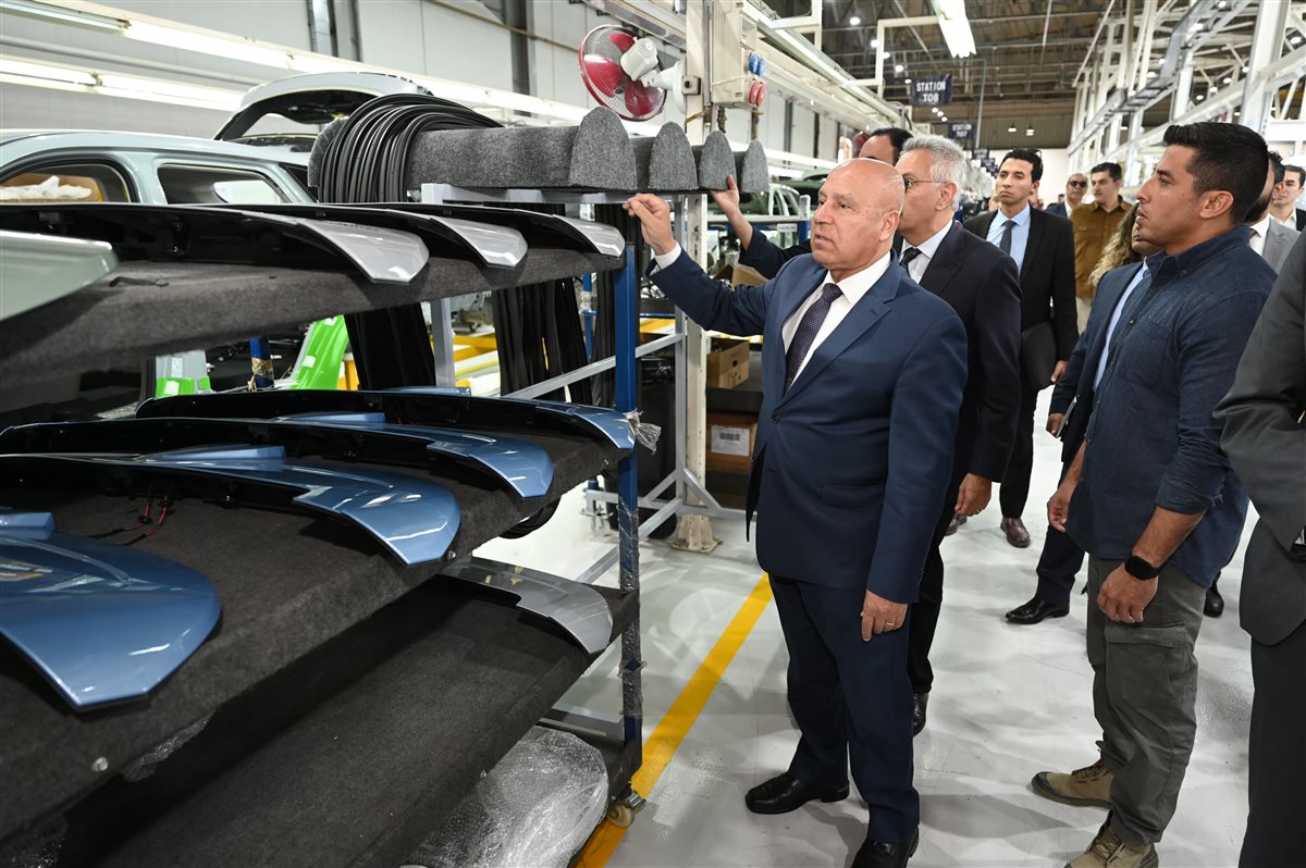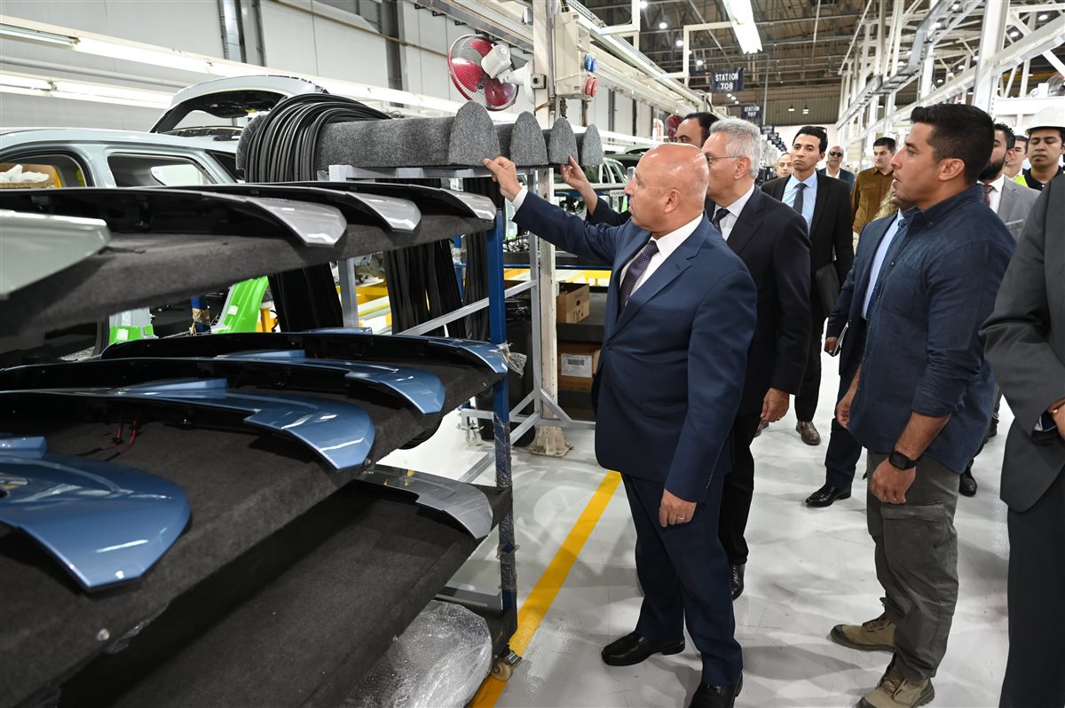 وقد تفقد الوزير خلال الزيارة خطوط الإنتاج بالمصنع، والتي تشمل خط التجميع الكامل الخاص بالسيارة إكسيد وخط التجميع الكامل للسيارة المرسيدس وخطوط الدهان وخط الاختبارات النهائية قبل التسليم.