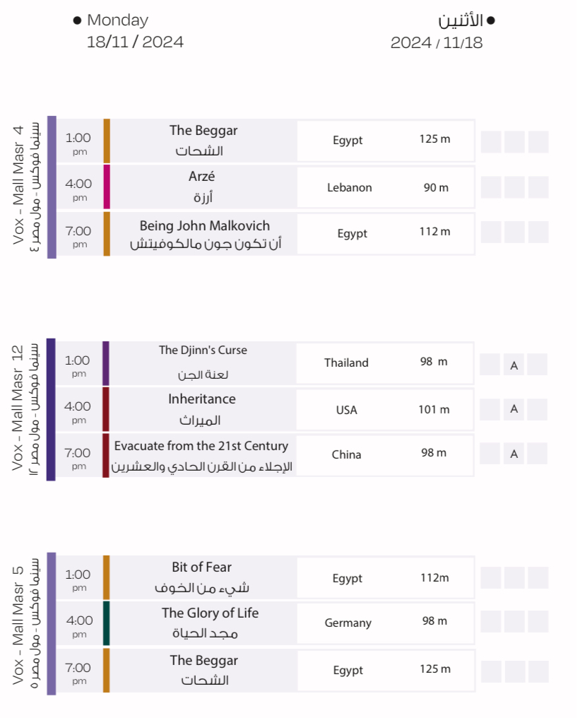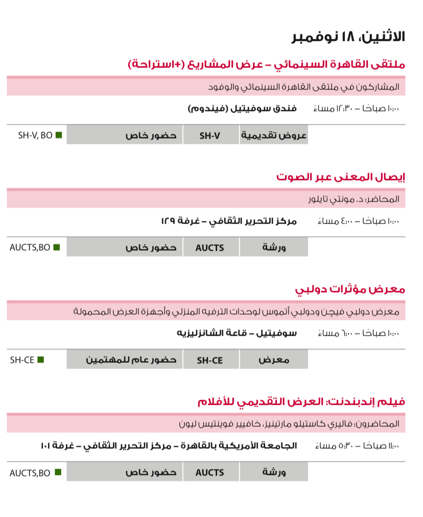 برنامج ندوات وفعاليات مهرجان القاهرة السينمائي الدولي اليوم الاثنين