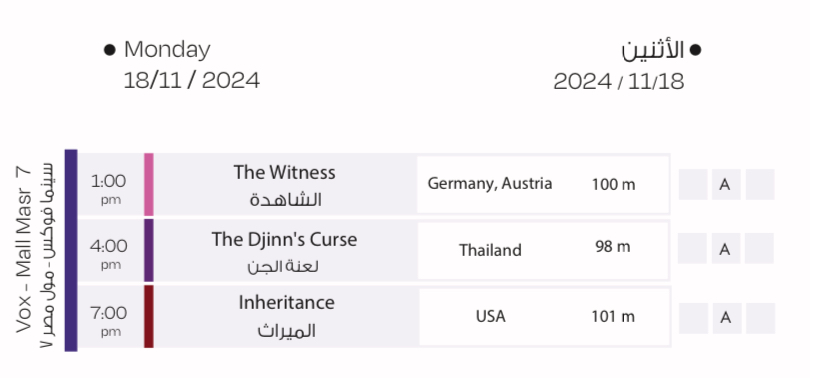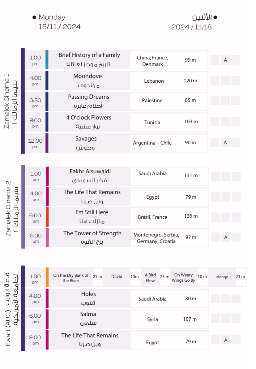 عروض أفلام مهرجان القاهرة السينمائي الدولي اليوم