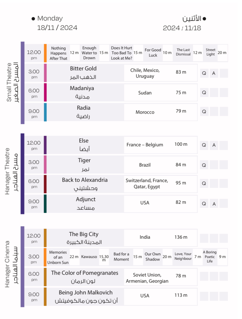 تعرف على برنامج فعاليات وعروض مهرجان القاهرة السينمائي الدولي اليوم