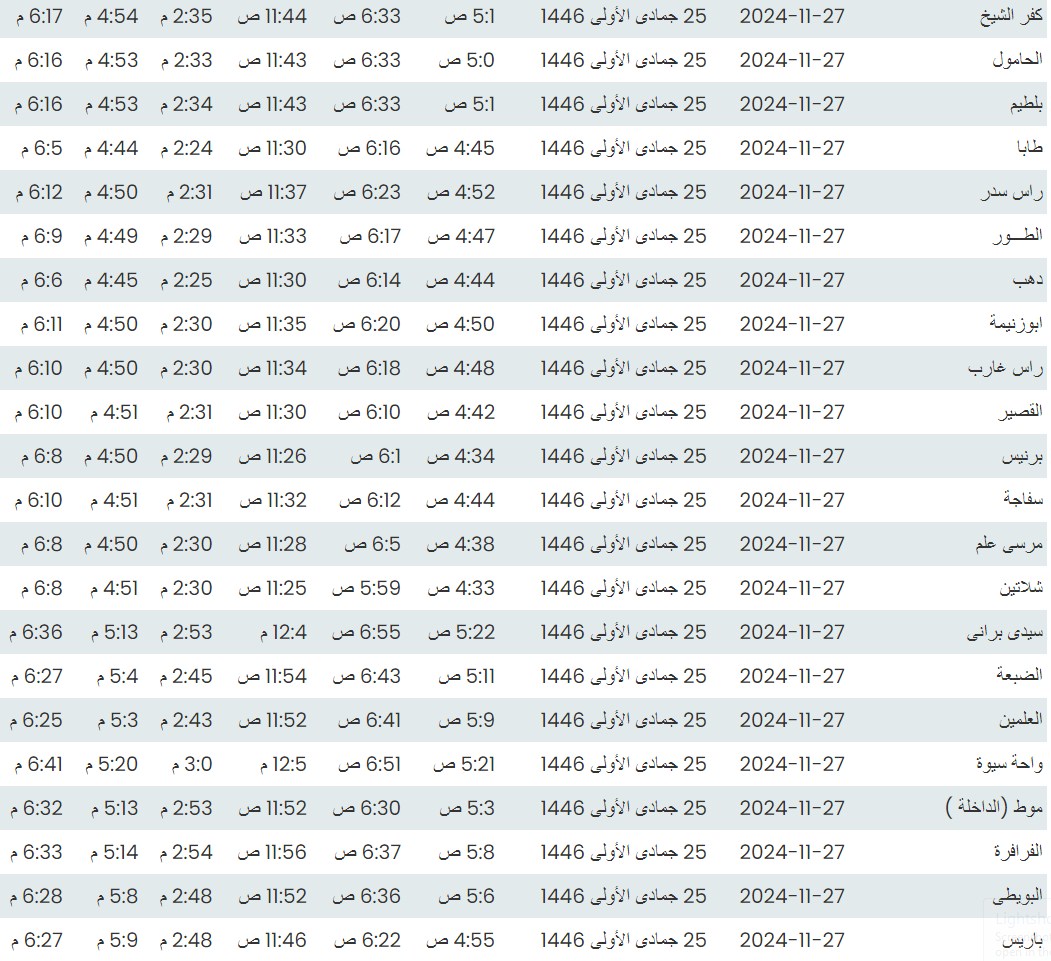مواقيت الصلاة اليوم بتوقيت أسوان