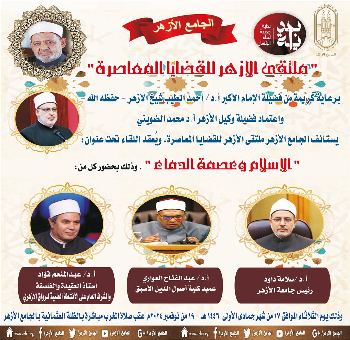 جدير بالذكر أن ملتقى "الأزهر للقضايا المعاصرة" يُعقد الثلاثاء من كل أسبوع في رحاب الجامع الأزهر الشريف، تحت رعاية فضيلة الإمام الأكبر وبتوجيهات من فضيلة الدكتور محمد الضويني وكيل الأزهر الشريف، حيث كان بمسمى "شبهات وردود" وتم تغييره لملتقى الأزهر للقضايا المعاصرة، بعد نجاحه طوال شهر رمضان والذي كان يعقد يوميًا عقب صلاة التراويح، ويتناول هذا الملتقى في كل حلقة قضية تهم المجتمع والوطن، والعالَمَين العربي والإسلامي.