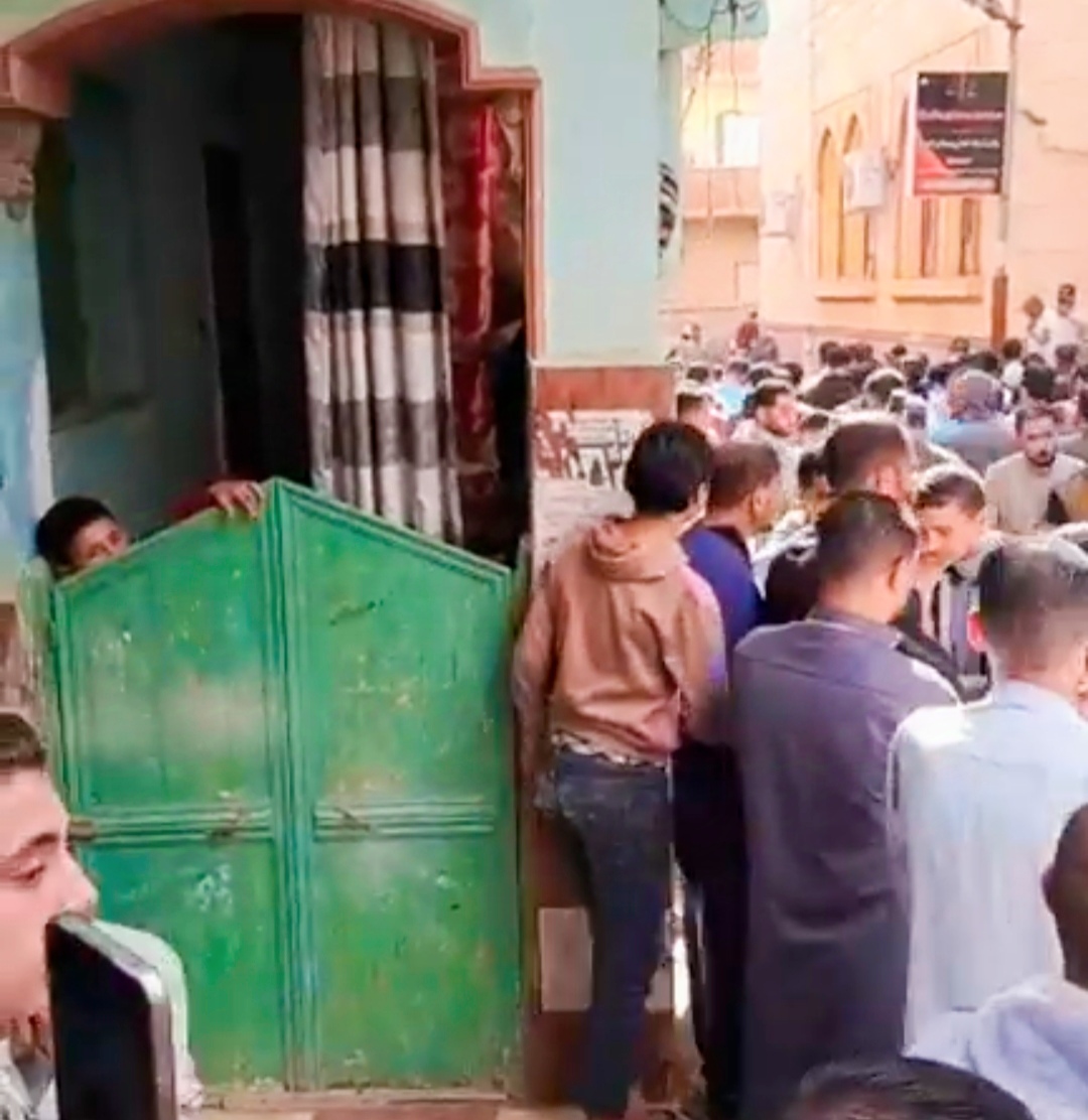 وتوافد المئات من أهالي القرية أمام المسجد للصلاة على جثمان اللاعب عقب صلاة الظهر بالمسجد الكبير.