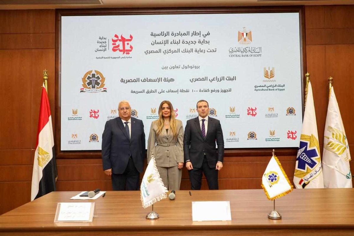 وقع البنك الزراعي المصري وهيئة الإسعاف المصرية بروتوكول تعاون تحت رعاية البنك المركزي المصري بهدف تطوير ورفع كفاءة نقاط الإسعاف في عدد من المحافظات، وذلك من خلال قيام البنك الزراعي المصري بتوفير التجهيزات اللازمة لــ 100 نقطة إسعاف على الطرق السريعة مساهمةً من البنك في تعزيز الدور الحيوي الذي تقوم به هيئة الإسعاف في تقديم الرعاية الصحية العاجلة للمواطنين بتلك المحافظات، في إطار دوره الوطني ومسئوليته المُجتمعية، وتنفيذًا لأهداف المبادرة الرئاسية “بداية جديدة لبناء الإنسان”.