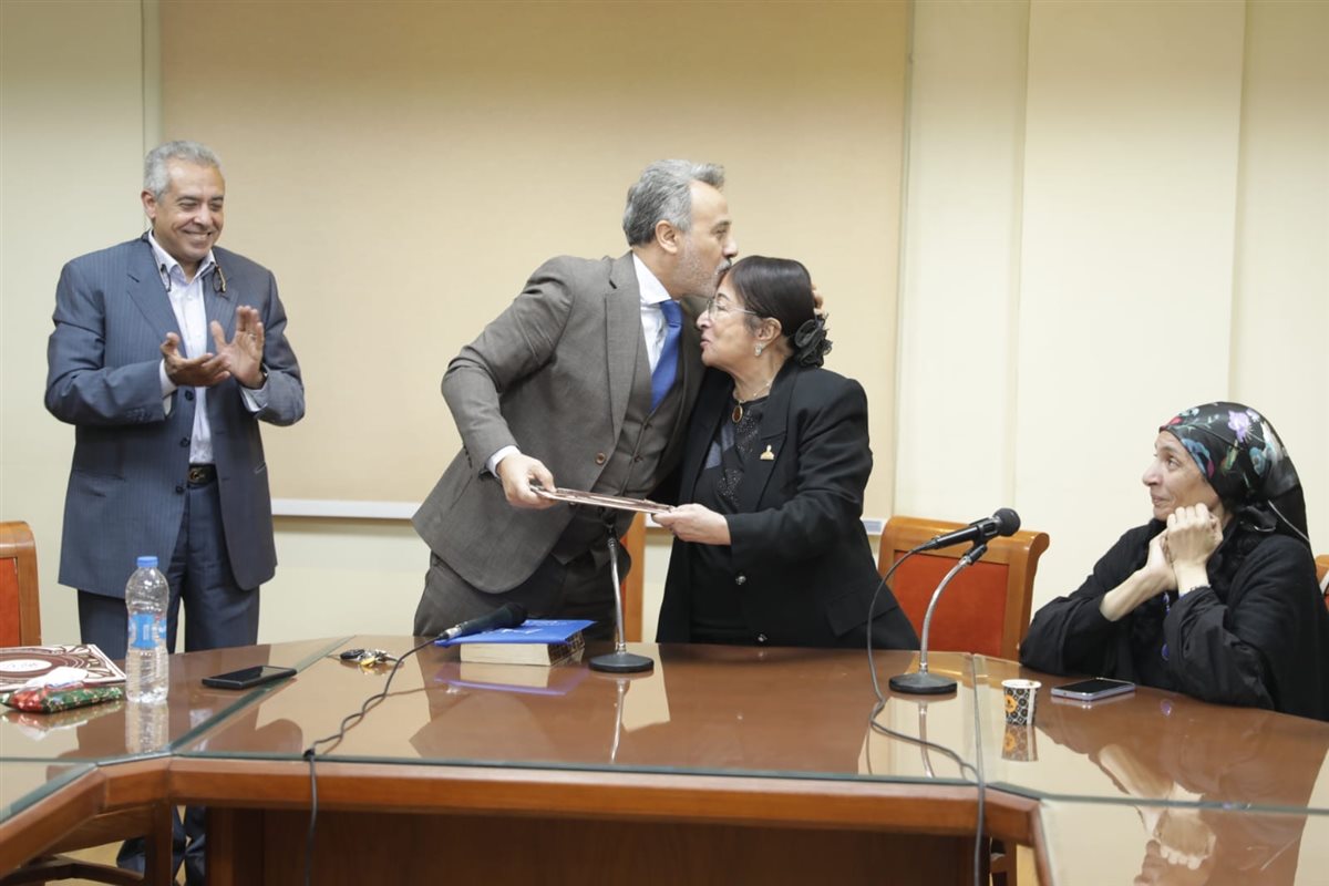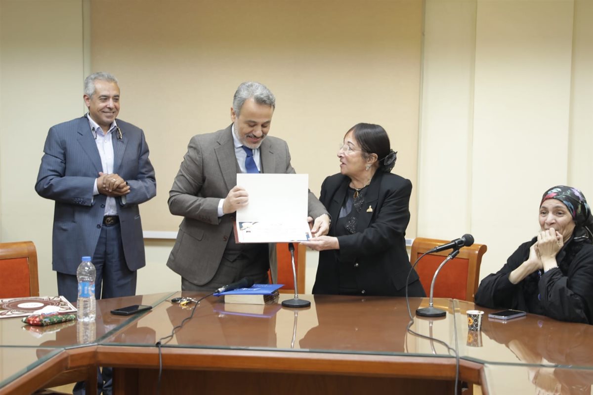 واختتمت الندوة بتكريم الفنان إيهاب فهمي للفنانة القديرة سميرة عبد العزيز، والناقد المسرحي الكبير محمد بهجت، وأهدى كلا منهما شهادة تقدير من المركز القومي للمسرح والموسيقى والفنون الشعبية؛ تقديرا لمشاركتهما المتميزة في هذه الندوة.