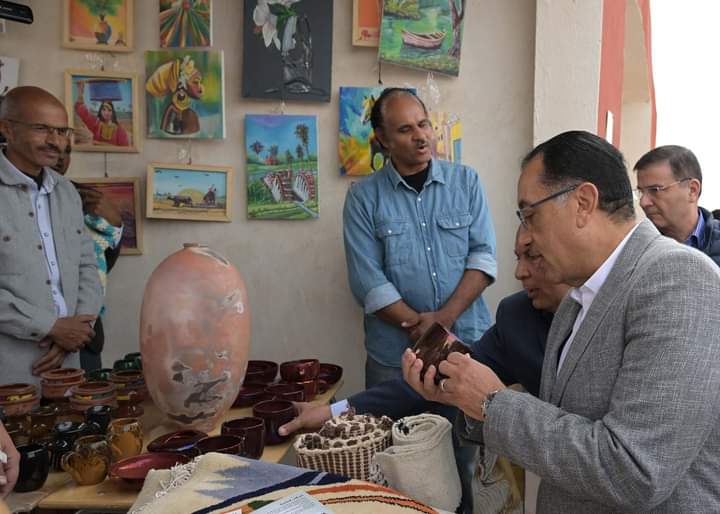 وتفقد رئيس الوزراء معرض الحرف اليدوية والتراثية، لمختلف المحافظات من أنحاء الجمهورية، وكذا عددًا من ورش الحرف اليدوية الخاصة بالرسم على الرمال، والنول، والصوف، وغزل السجاد، والخزف، والفخار، كما تعرف على منتجات الجمعيات الحرفية اليدوية، ومنتجات الأسر المنتجة، ومنتجات جمعيات تنمية المجتمع، ومنتجات عدد من المحافظات المشاركة فى المعرض.