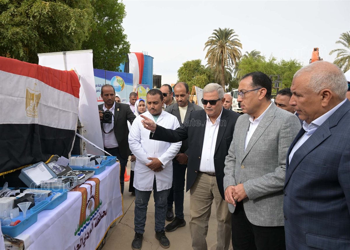 مدبولي يتفقد اصطفاف المعدات الخاصة بقطاع مياه الشرب والصرف الصحي بمدينة الخارجة (صور)