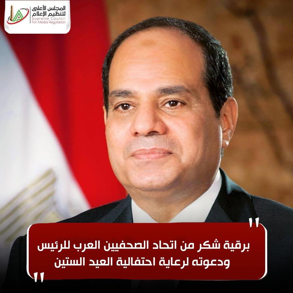 برقية شكر من اتحاد الصحفيين العرب للرئيس ودعوته لرعاية احتفالية العيد الستين