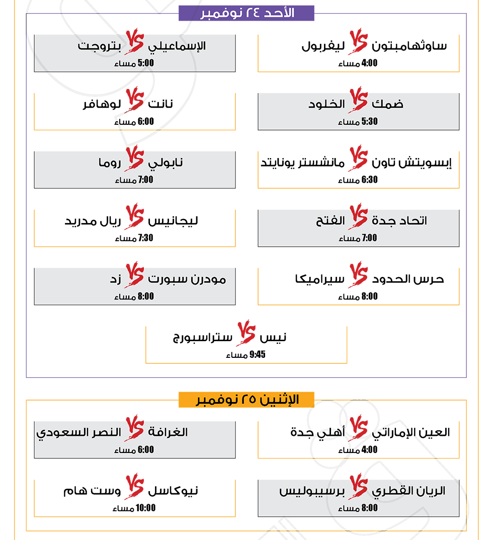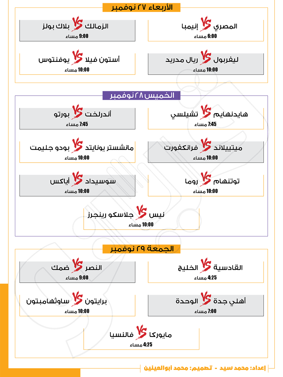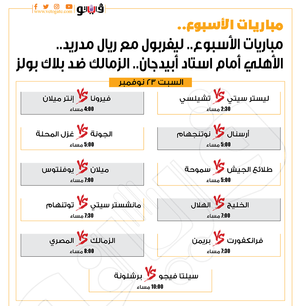 مباريات الأسبوع، ليفربول مع ريال مدريد.. الأهلي أمام استاد أبيدجان.. الزمالك ضد بلاك بولز (إنفوجراف)