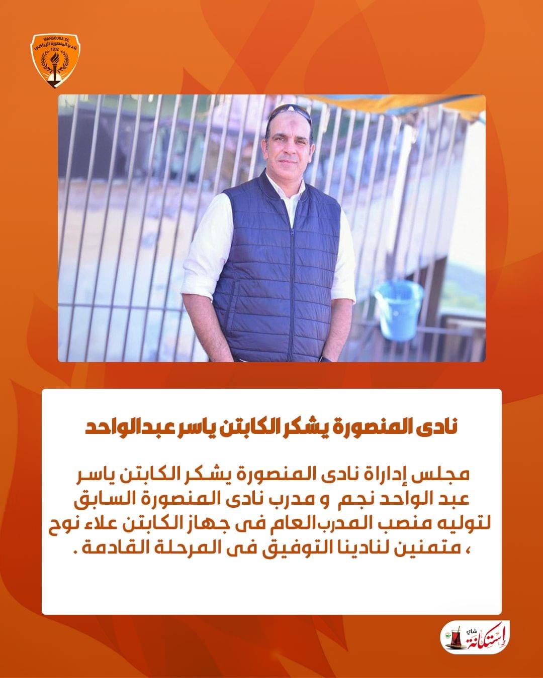 والجدير بالذكر أن المنصورة كان أعلن منذ يومين فقط تعيين الثنائي ياسر تحسين ومحمد النحاس في الجهاز الفني الجديد للفريق بقيادة المدير الفني علاء نوح، والذي حل بديلا للراحل أيمن المزين.