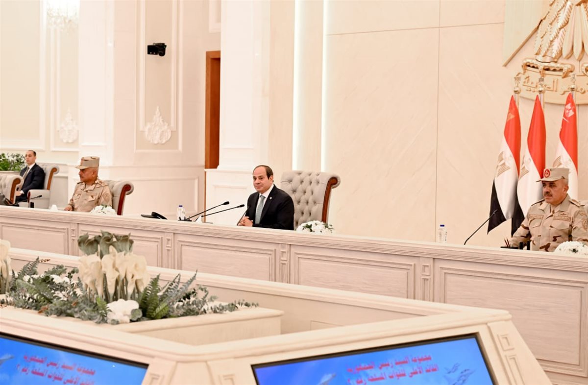 وشدد الرئيس على أن الأحداث المتلاحقة والأوضاع المضطربة التي تشهدها المنطقة، تؤكد أن خيارنا للسلام العادل والمستدام يفرض علينا الاستمرار في بناء قدرات القوى الشاملة لصون وحماية الوطن، مع الاستمرار في جهود التنمية الشاملة للدولة لتحقيق تطلعات أبناء الشعب المصري العظيم نحو مستقبل أفضل.