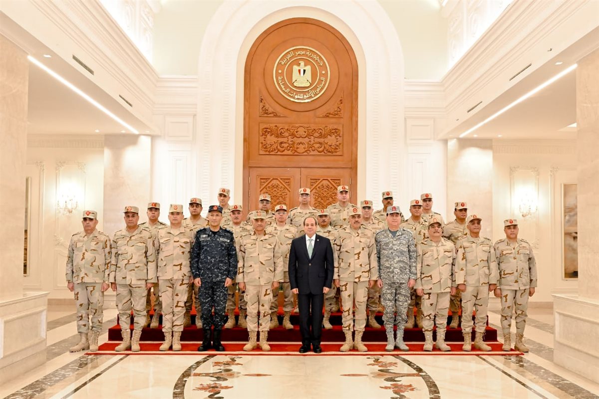 اجتمع الرئيس عبد الفتاح السيسي رئيس الجمهورية القائد الأعلى للقوات المسلحة، اليوم، بعدد من قادة القوات المسلحة، بمقر القيادة الاستراتيجية بالعاصمة الإدارية الجديدة، وذلك بحضور الفريق أول عبد المجيد صقر القائد العام للقوات المسلحة وزير الدفاع والإنتاج الحربي والفريق أحمد خليفة رئيس أركان حرب القوات المسلحة، وقادة الأفرع الرئيسية.