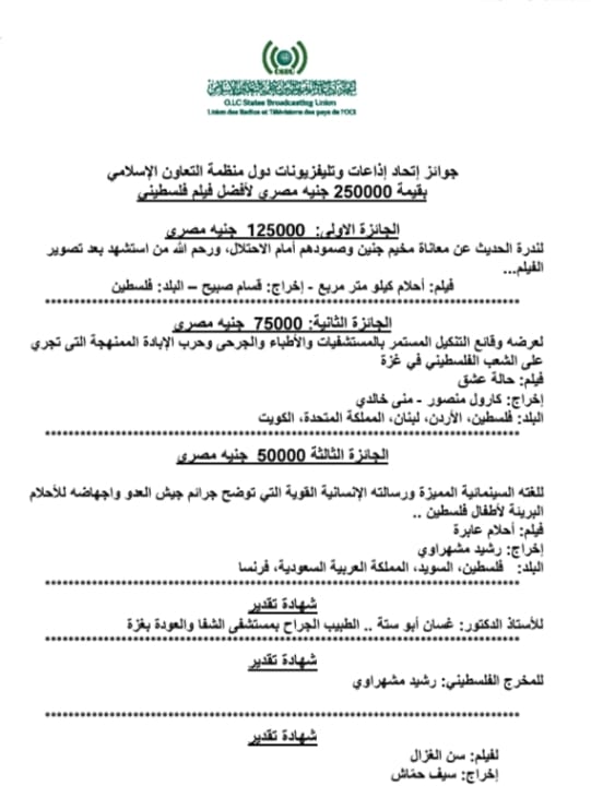 وجاءت جائزة الفيلم الفلسطيني كالتالي: