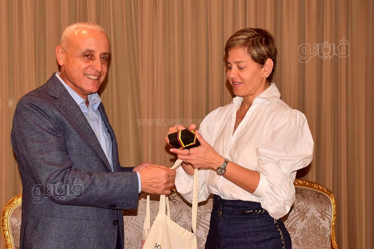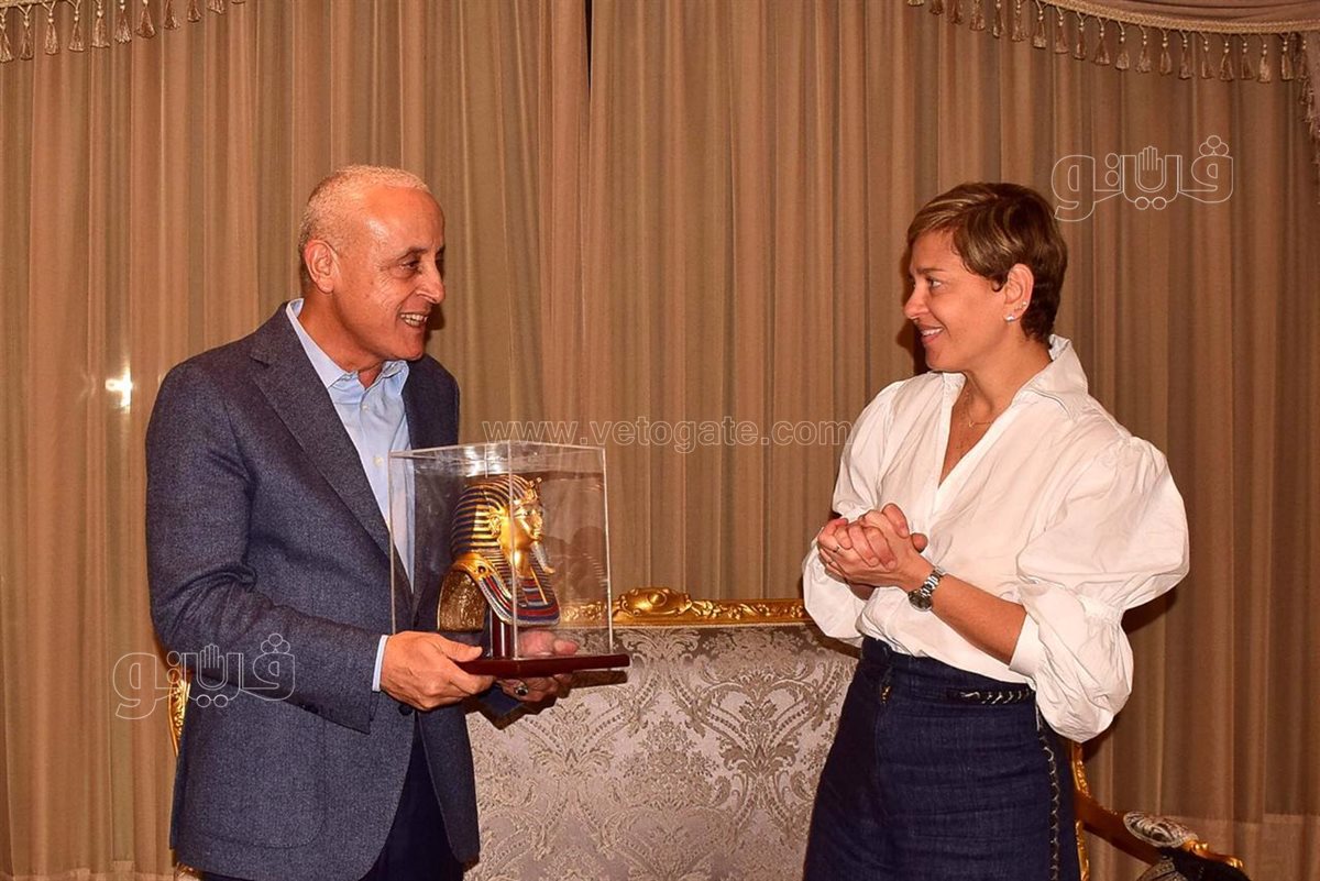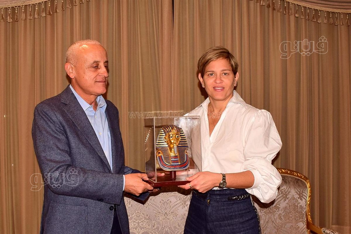 سيدة كولومبيا الأولى تغادر الأقصر والمحافظ يهديها قناع الفرعون الذهبي (صور)