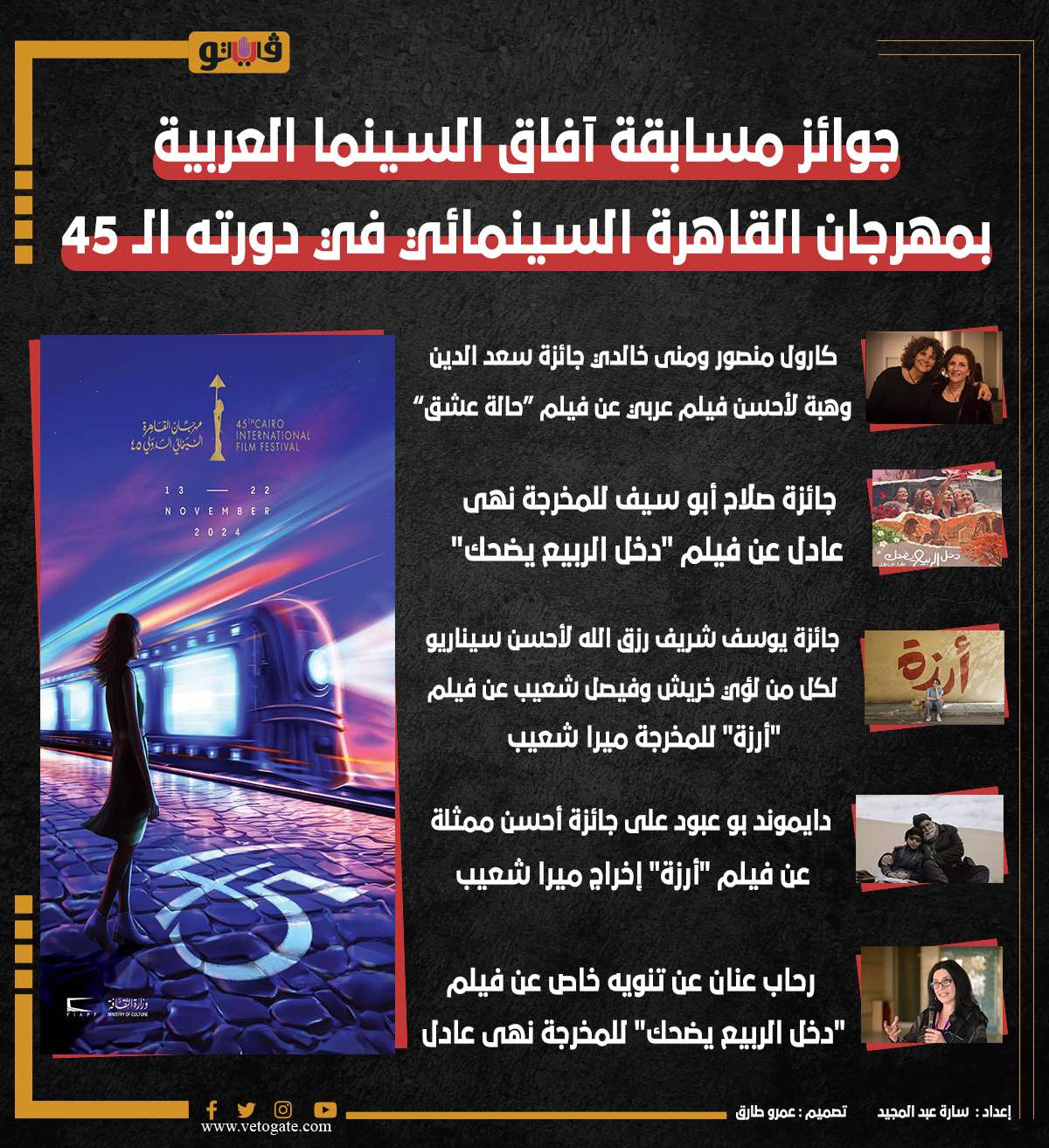 جوائز مسابقة آفاق السينما العربية بمهرجان القاهرة السينمائي في دورته الـ 45 (إنفوجراف)