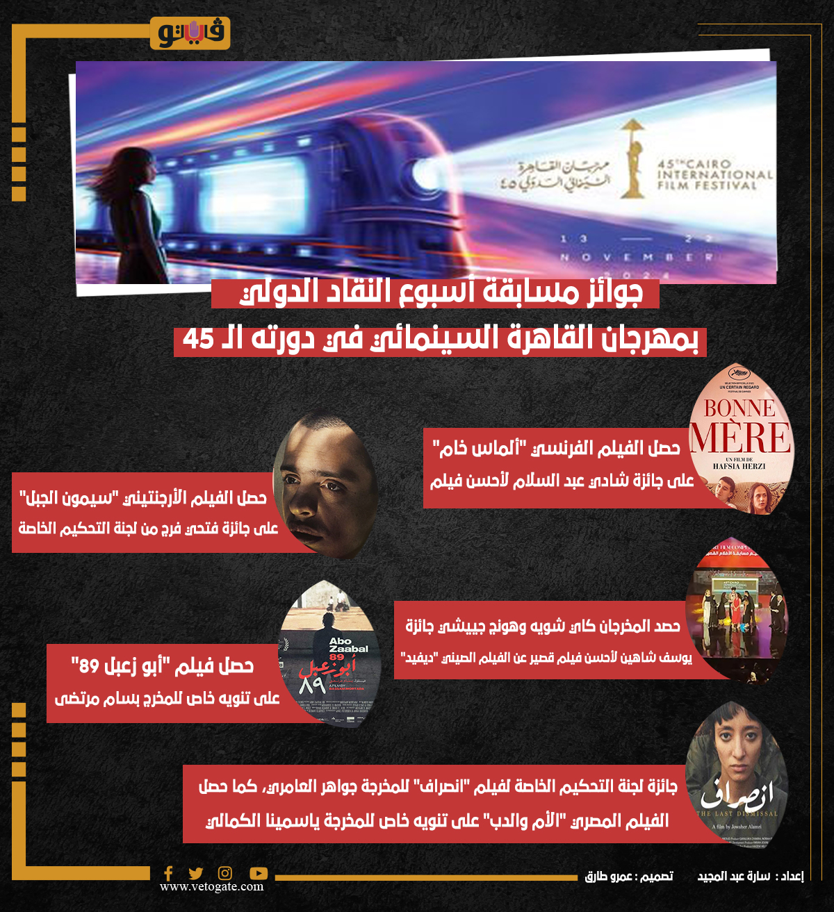 جوائز مسابقة أسبوع النقاد الدولي بمهرجان القاهرة السينمائي في دورته الـ 45 (إنفوجراف)