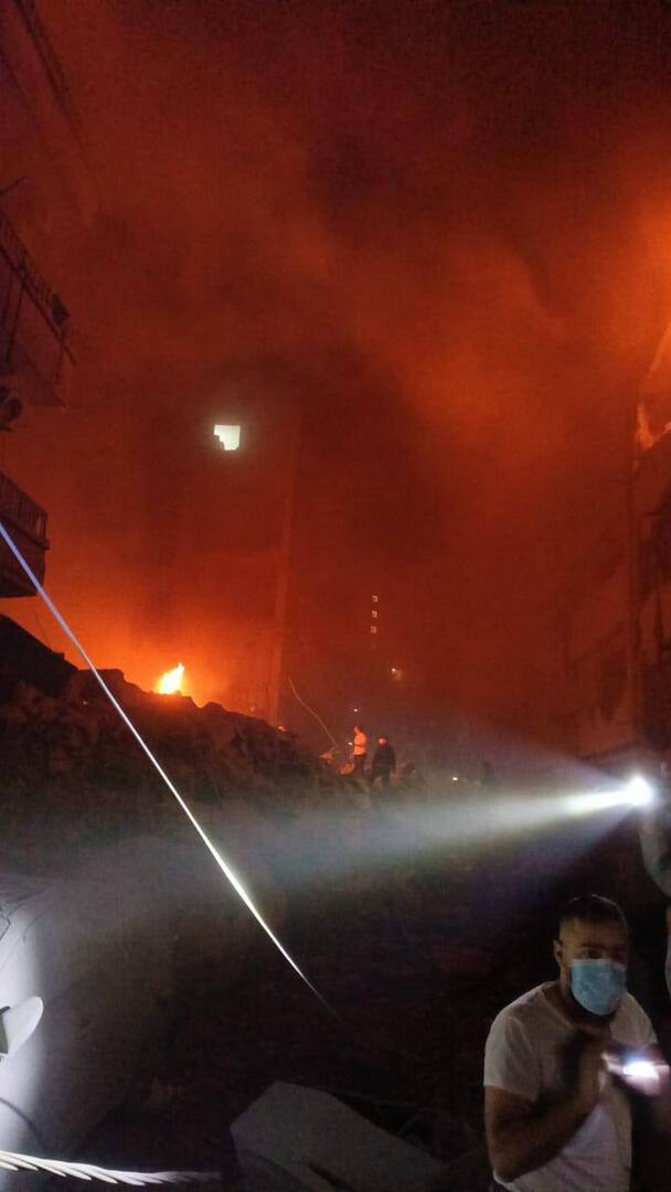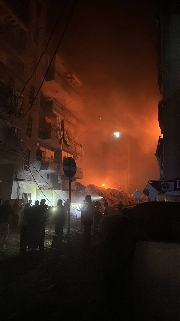 والمبنى المستهدف مؤلف من 8 طبقات، وقد سوي أرضًا، كما تسبب الاستهداف بدمار كبير في المباني المحيطة.