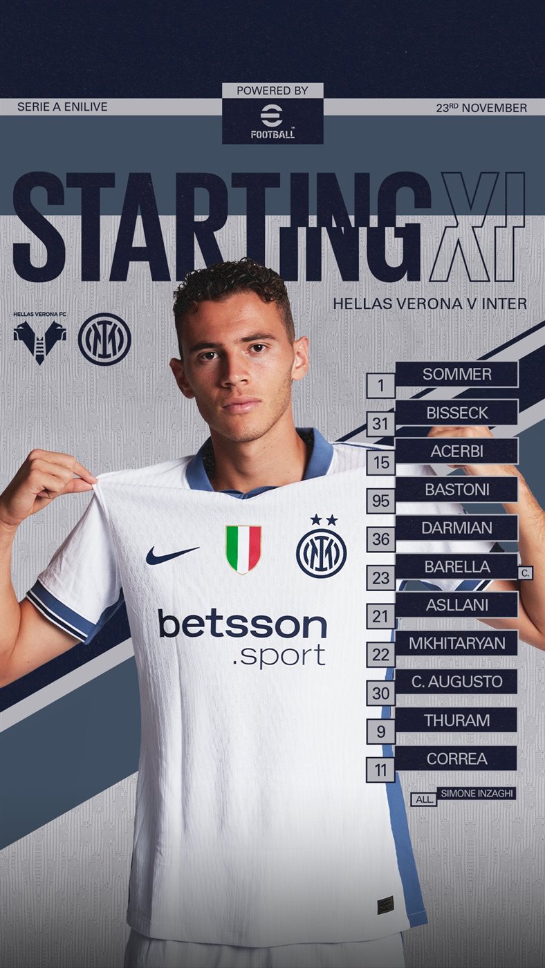 أعلن المدرب سيموني إنزاجي المدير الفني لفريق إنتر ميلان الإيطالى، تشكيل فريقه أمام هيلاس فيرونا، فى افتتاح منافسات الجولة الثالثة عشرة من مسابقة الدوري الإيطالي.