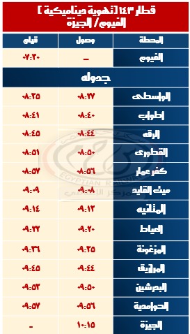 ويترتب على ذلك تعديل مواعيد القطارات التالية (187 / 143 / 162 /707 ) طبقًا للجداول المرفقه.