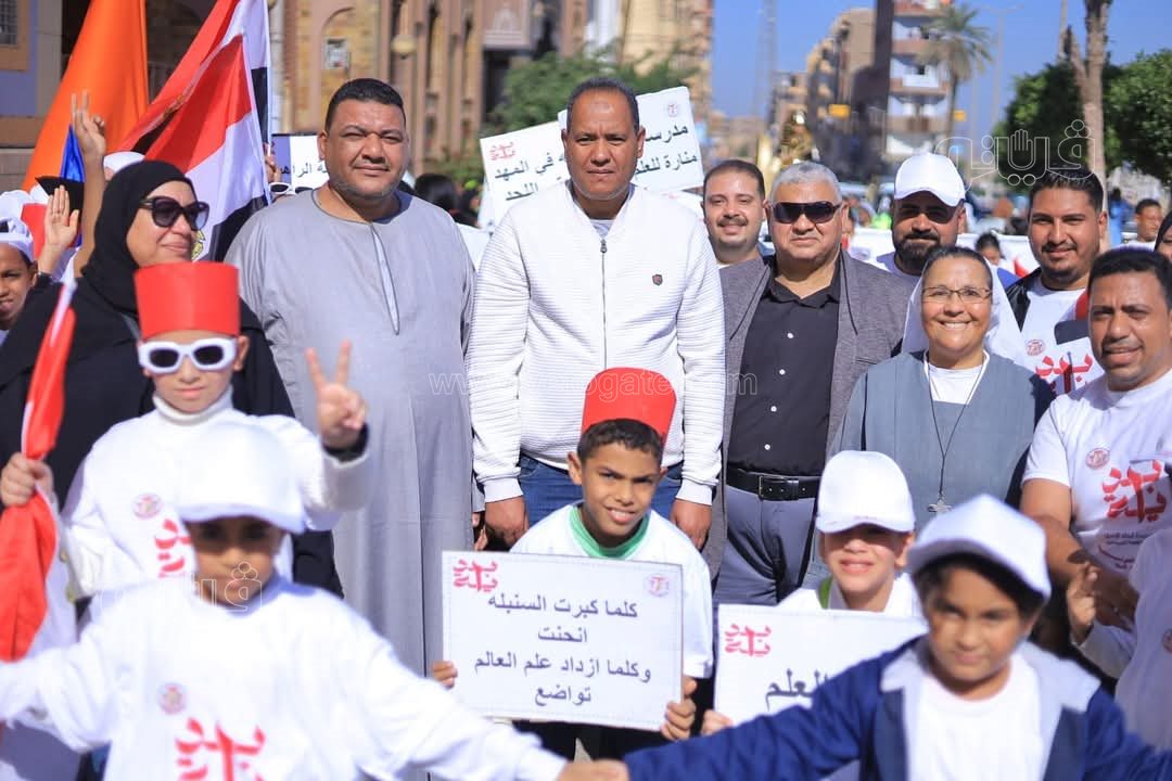 وحرص الطلاب أثناء المسيرة سيرا على الأقدام من أمام المدرسة مرورا بشارع البحر، على رفع أعلام مصر وسط أجواء من الفرحة والبهجة، وقامت مدرسة الراهبات الفرنسيسكانيات بمركز إسنا في الأقصر على تكريم الحاصلون على المراكز الأولى في الماراثون وتوزيع جوائز عليهم.