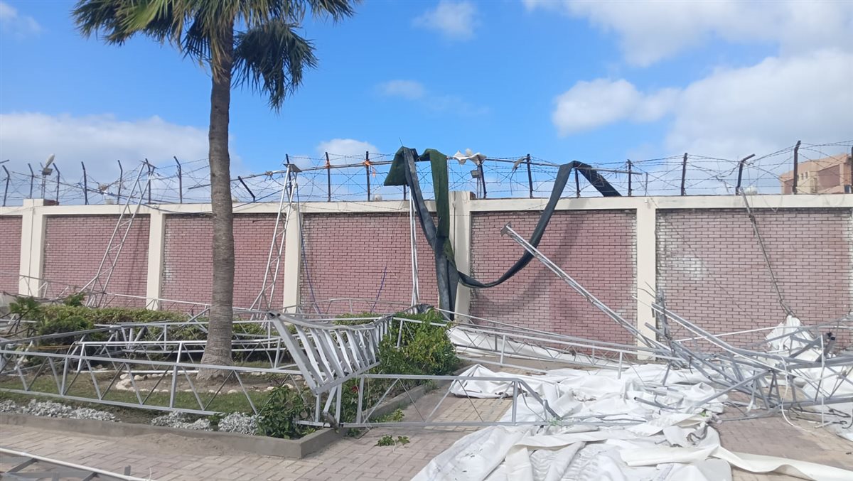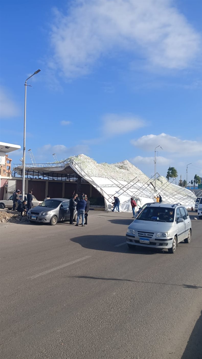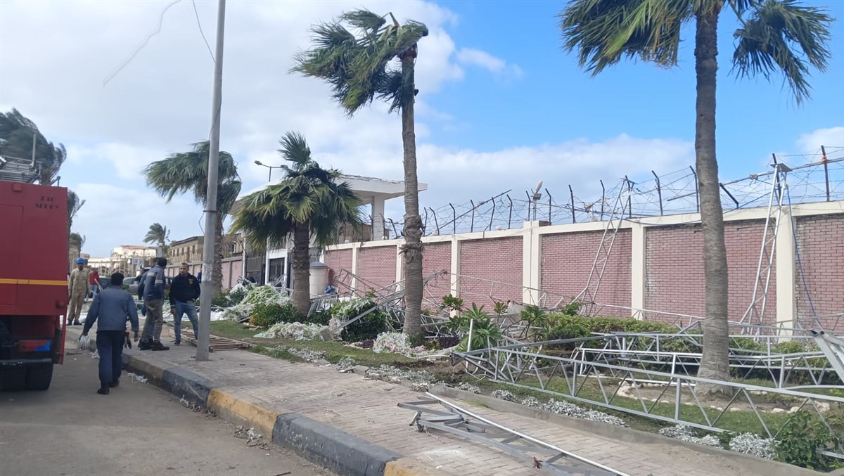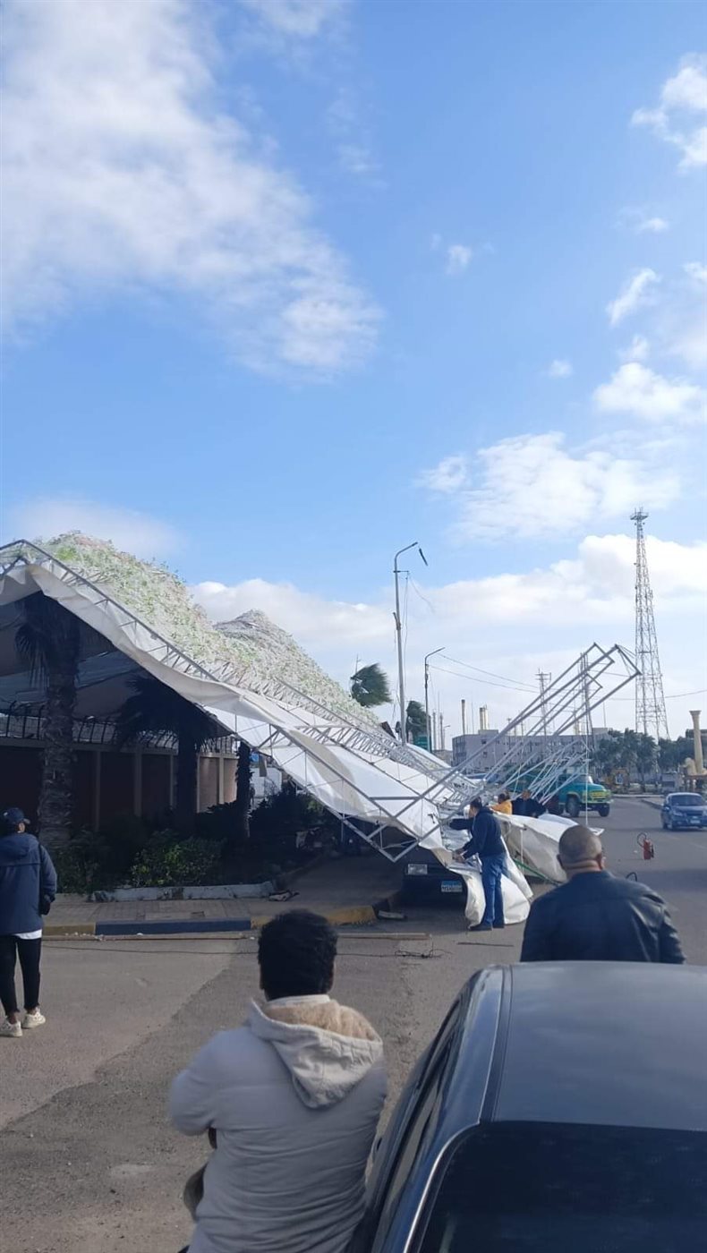 تسببت الرياح الشديدة في سقوط جمالون ضخم داخل نادي شركة الإسكندرية للبترول الي خارج النادي بحي العجمي غرب الإسكندرية، دون حدوث إصابات أو خسائر بشرية.