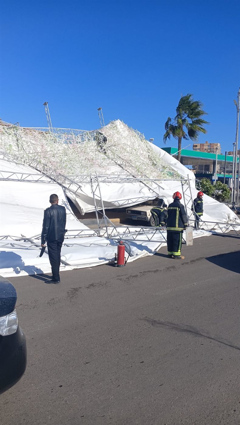 وكانت غرفة عمليات حي العجمي برئاسة هدى أبو كليلة، تلقت بلاغًا بسقوط جمالون ضخم داخل نادي الإسكندرية للبترول إلى خارج الشارع في طريق المكس يخص قاعة افراح بالنادي، وتوجهت رئيسة الحي بصحبة إدارات الحي والحماية المدنية.
