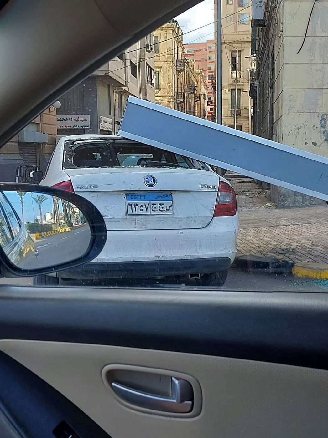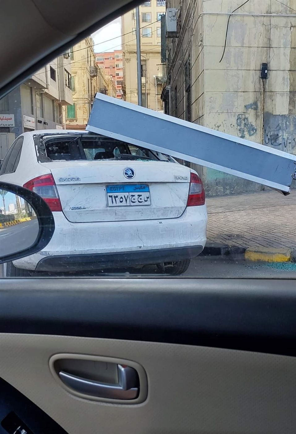 سقوط جمالون ولوحات إعلانات بسبب الرياح الشديدة في الإسكندرية (صور)