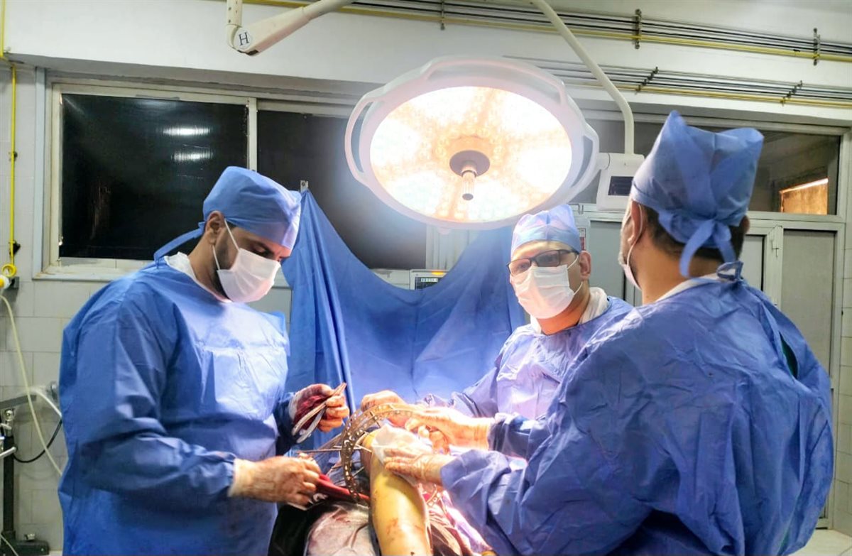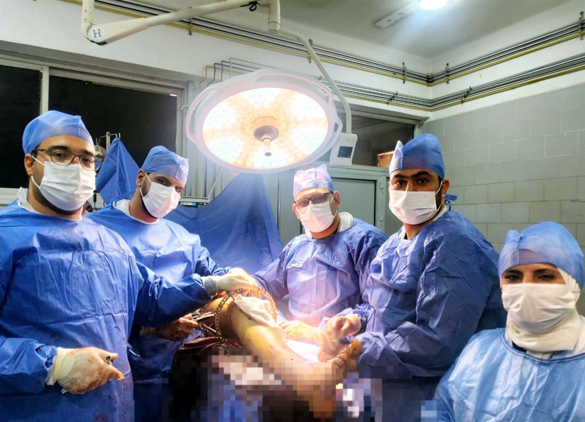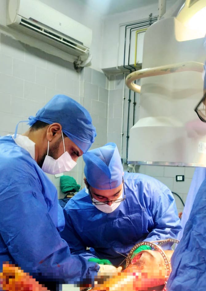 واضاف وكيل صحة الدقهلية أن المريض يبلغ من العمر 20 عاما تعرض لحادث سير أدي إلى كسر مضاعف متفتت بأسفل عظمة الفخذ والركبة اليمني مع فقدان جزء من عظمة الفخذ وكذلك كسر بالساق اليمني والتي كانت تعرضت لكسر منذ عامين تم تثبيته بواسطة مسمار نخاعي تشابكي وقد أسفر الحادث الجديد عن اعواج المسمار .