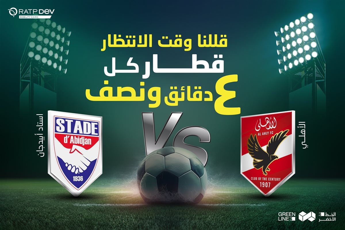وقالت الشركة على صفحتها: "اليوم الثلاثاء 26 نوفمبر في إستاد القاهرة الدولي، النادي الأهلي هيلعب ضد نادي إستاد أبيدجان، اركب الخط الأخضر الثالث واوصل لمحطة الاستاد في أسرع وقت علشان تلحق المباراة، هيتوفر قطار كل 4 دقائق ونصف قبل وبعد المباراة من محطة الكيت كات لعدلي منصور".