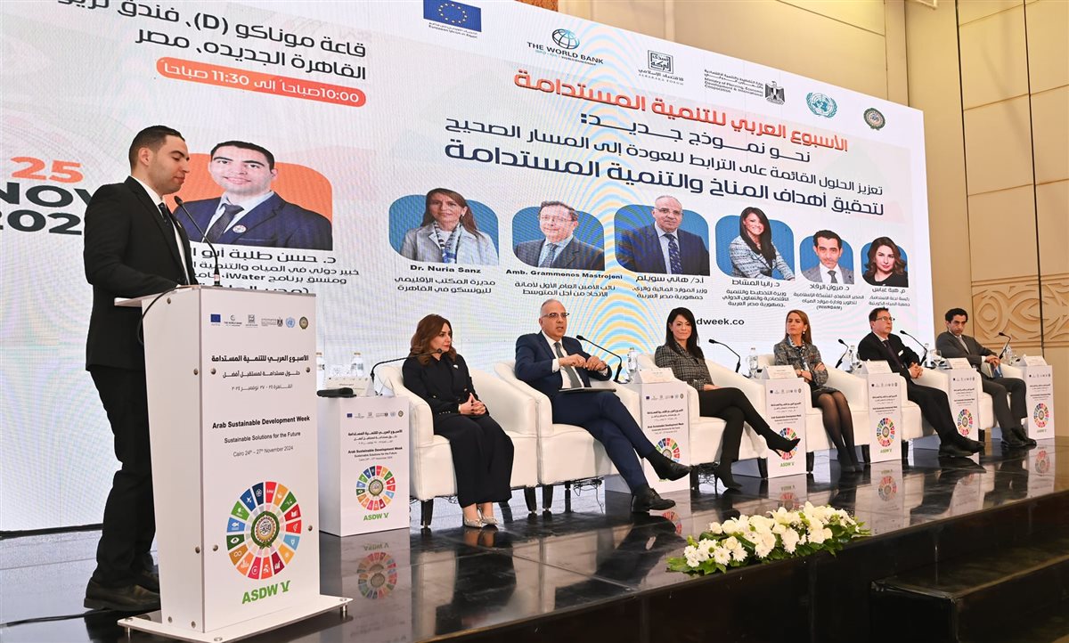 شارك الدكتور هاني سويلم وزير الموارد المائية والري في جلسة "تعزيز الحلول المتكاملة للمياه والطاقة والغذاء لتحقيق أهداف المناخ والتنمية المستدامة" ضمن فعاليات "الأسبوع العربي للتنمية المستدامة".