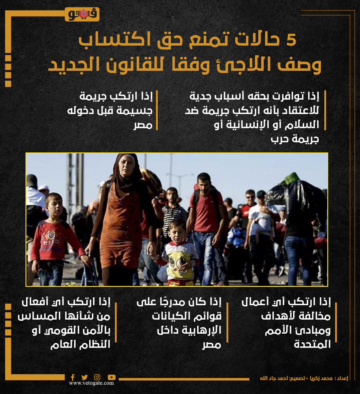 5 حالات تمنع حق اكتساب وصف اللاجئ وفقا للقانون الجديد (إنفوجراف)
