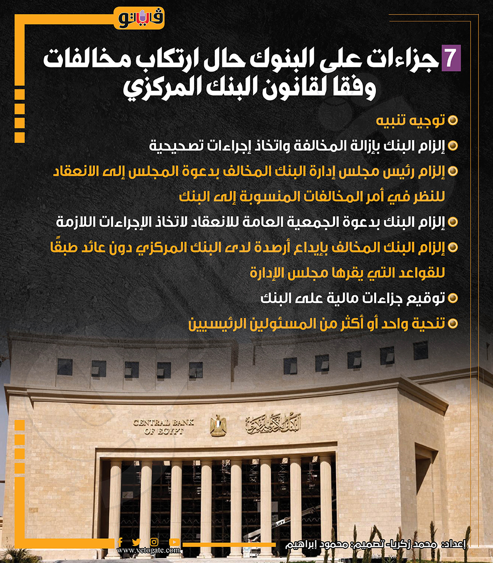 7 جزاءات على البنوك حال ارتكاب مخالفات وفقا لقانون البنك المركزي (إنفوجراف)