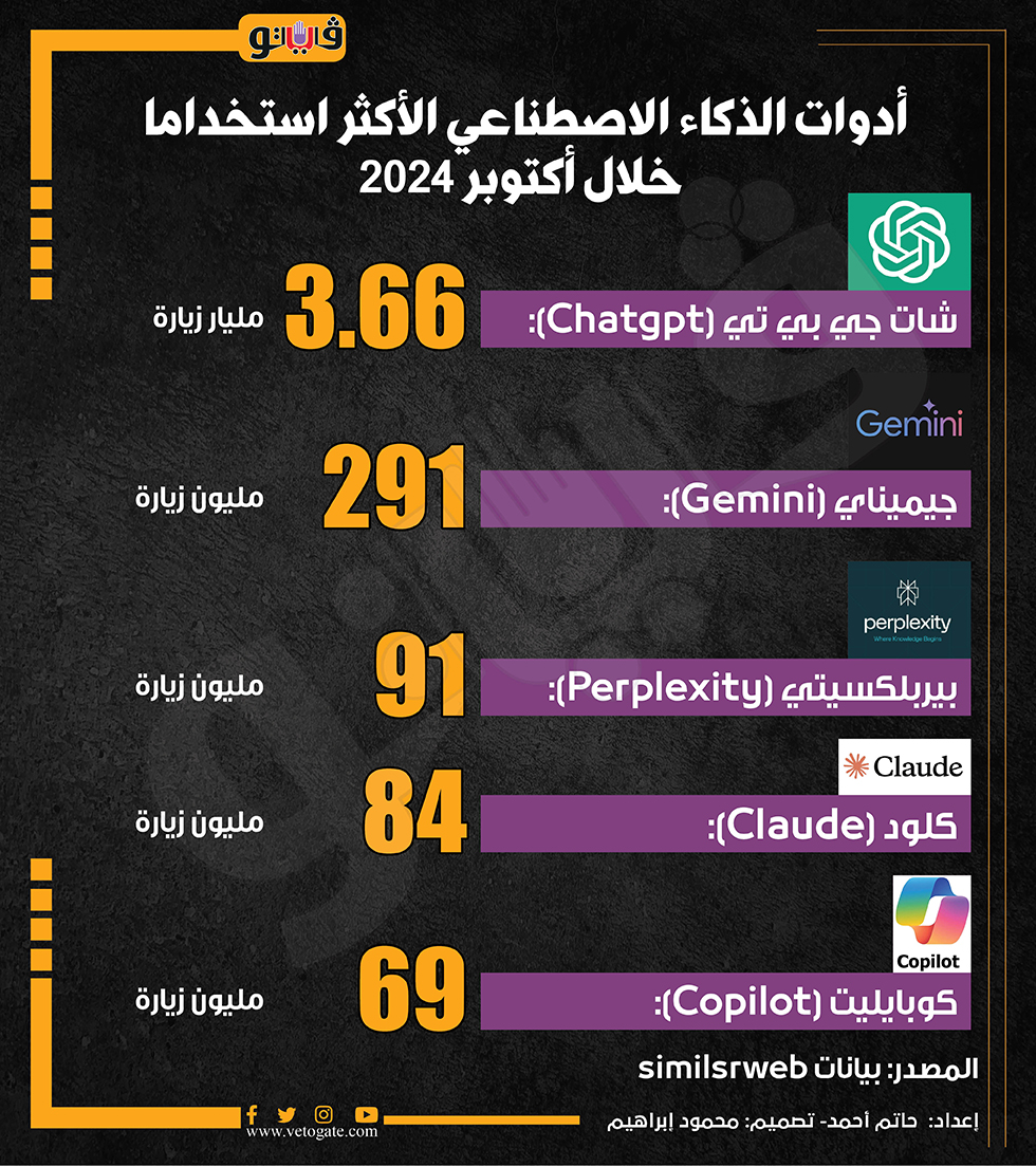 أدوات الذكاء الاصطناعي الأكثر استخداما خلال أكتوبر 2024 (إنفوجراف)