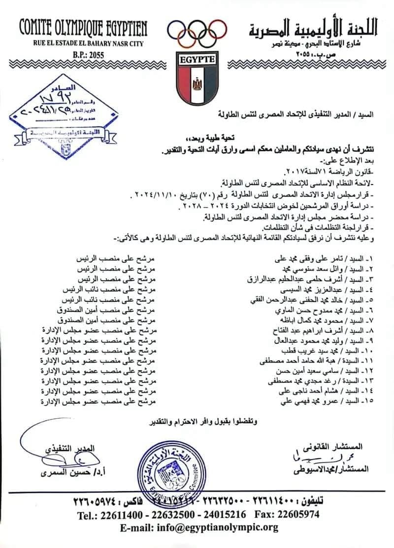 تنس الطاولة، قرر مسئولو اللجنة الأولمبية استبعاد مجلس إدارة اتحاد تنس الطاولة برئاسة معتز عاشور من انتخابات الاتحاد المقبلة.