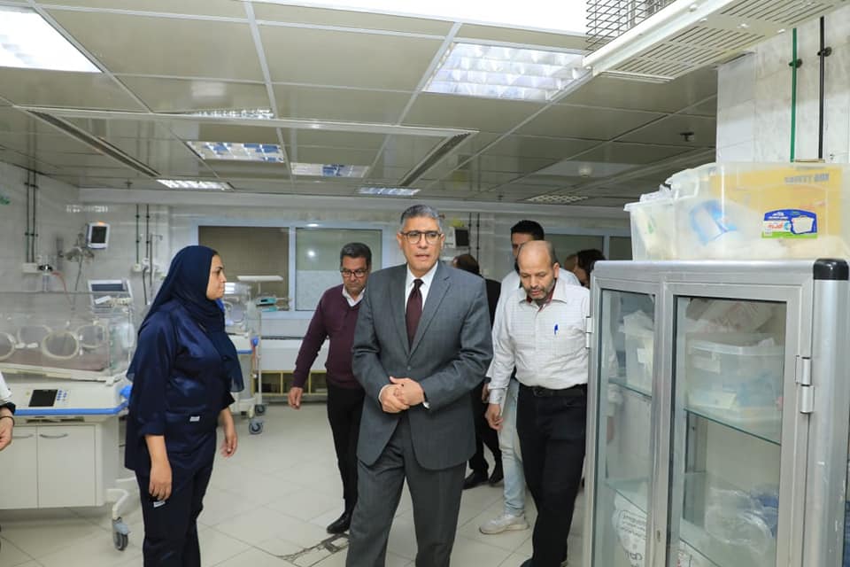 تفقد محافظ الجيزة أقسام بنك الدم والاطفال المبتسرين والحضانات والعناية المركزة والصيدلية والنفايات الخطرة.