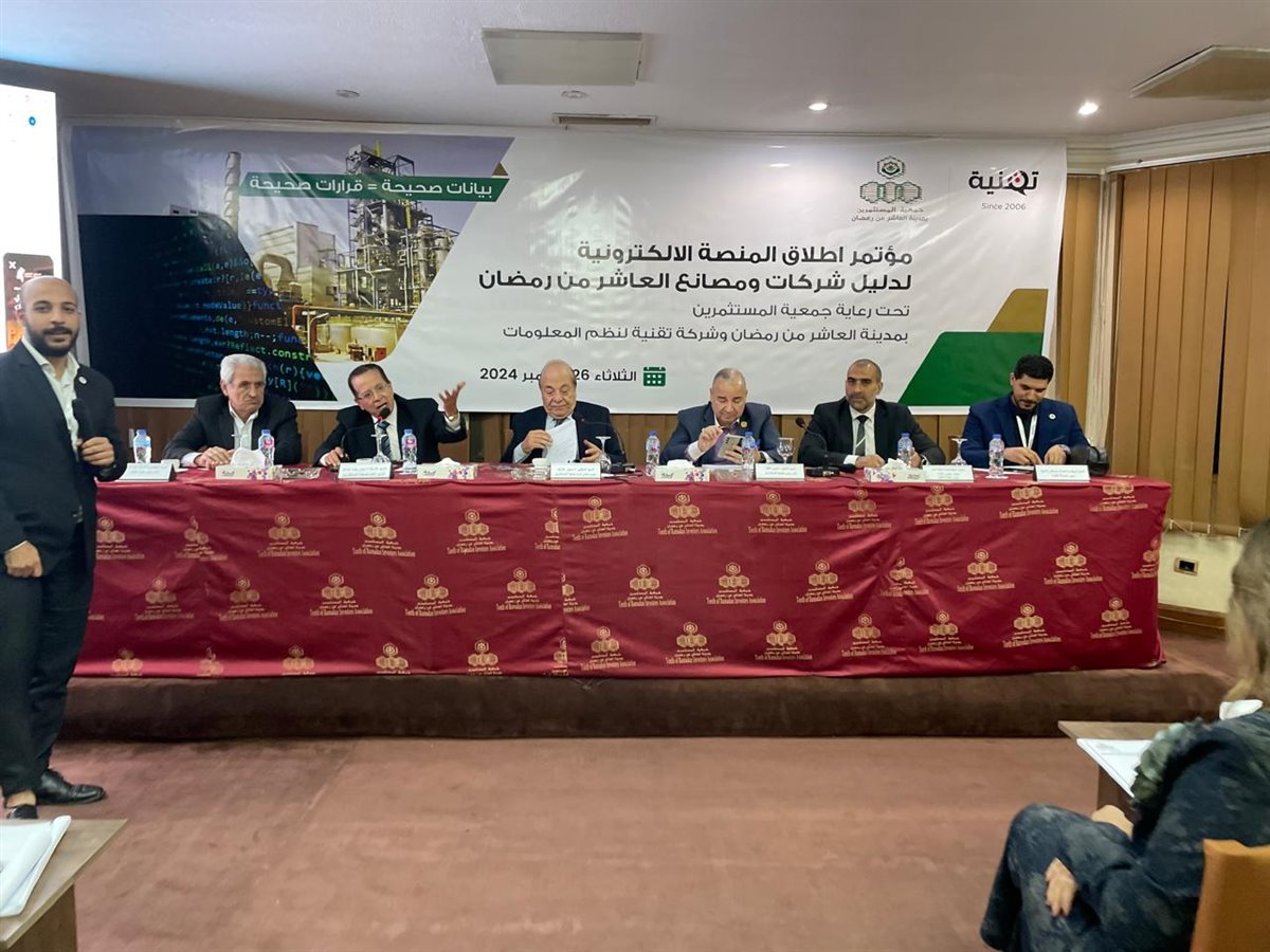 أطلقت جمعية مستثمري العاشر من رمضان، اليوم، خدمة المنصة الإلكترونية "الدليل الإلكتروني" الأول للجمعية ومدينة العاشر من رمضان؛ وذلك في مؤتمر موسع أقيم في مقر الجمعية.